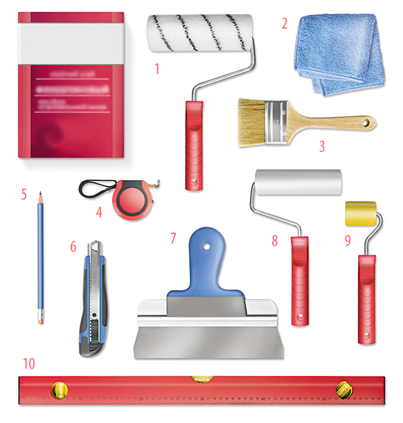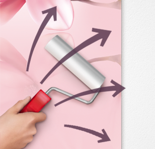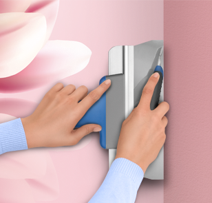 Attention ! Ne laissez jamais sécher les résidus de colle sur la surface du papier peint. Certains types de colle peuvent endommager les couleurs s’ils restent trop longtemps. Après chaque bande posée, nettoyez soigneusement les traces de colle avec un chiffon doux et humide.